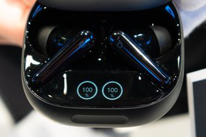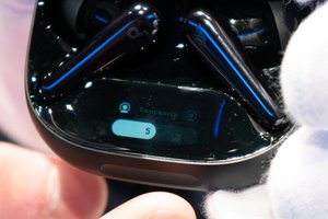 本モデルでは、充電ケースにタッチバーとスクリーンを初搭載した。ANCや外音取り込みの強度を手動で調整できるほか、充電残量の確認にも対応している。イヤホン本体では、つまんで操作できる感圧センサーと、スライド操作できるスワイプコントロールにより、音楽の再生/停止や音量調整が可能となっている。