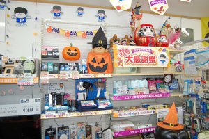 店頭で着飾ったナショナル坊やの衣装は、店内で随所に目に飛び込んでくるPOPとともに、服飾の専門学校に通われたという奥様の手作り。また、手掛けるインスタはお客様だけでなく、その手法や掲載された店の装飾が地域電器店関係者からも注目を集めている。