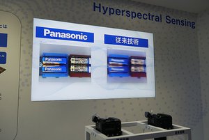 センシング技術の展示では、独自の圧縮センシング技術とデジタルカメラ開発のノウハウの融合によって、世界最高感度・スキャンレスでハイパースペクトル画像を撮影するセンシング技術を紹介。本技術を活用した試作カメラを展示している。