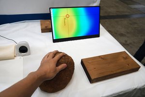 本センサーを用いることで、木材や大理石、革、布、芝、石膏ボードといった、これまでタッチセンサーとして使用することが難しかった素材でも、指や人の動きを検知することが可能。これにより、タッチパネルの存在を意識しないセンシングを可能とし、「これまでにないデザインとセンシング体験を実現する」と説明している。