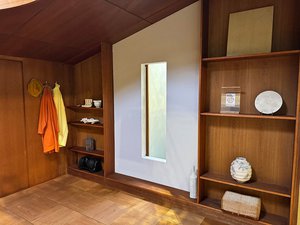 ブース内では日本の家屋がそうであるように、靴(と靴下)を脱いでエントリー。配置されている家具には、Apple Vision Proのクリックジェスチャーで開くダイヤログが至るところに配置されており、それを開くことでIPAの描く未来像と、関連する現在の取組をチェックすることができる。