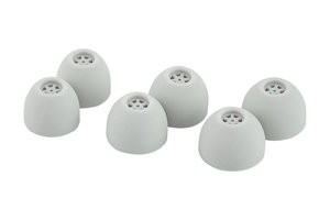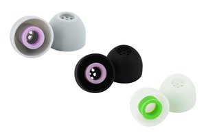 素材は医療グレードのシリコンを採用。安全性、耐久性が高いだけでなく、低刺激で長時間の使用時も耳にやさしいという。外径寸法(S/M/L)は、それぞれ約Φ10×8Hmm/約Φ12×9Hmm/約Φ13×9Hmm、ステム内径は約4mmで共通。