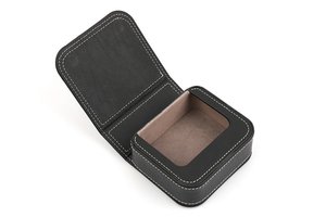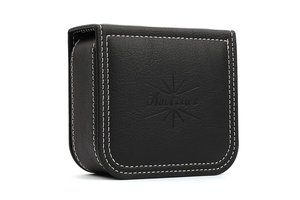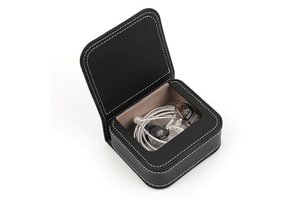 本体はアルミニウム合金フレームによって成形し、耐久性を確保。開閉はマグネット式による。内装はやわらかいベルベット生地を採用してクッション性を高め、IEMやポータブルDACに傷がつくのを防ぐという。外装は高品質のPUレザーを採用。アクセントとして本体にホワイトステッチを、またフロントにエンボス加工を施した。外径寸法は約95W×40H×85Dmm、質量は約80g。