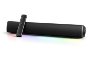 クリエイティブメディアは、RGBライトを搭載した2.0chサウンドバー「Sound Blaster GS5」を11月上旬に発売する。価格はオープンだが、税込11,000円前後での実売が予想される。