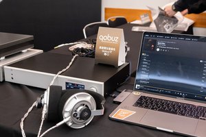 ブースでは先日ローンチされたばかりのハイレゾストリーミング・Qobuzを使った試聴ブースを用意。開幕直後から多くの方がその音を確かめに来ていた。