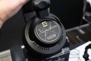 Ultrasoneからは、東京ゲームショウ2024などでも展示されたヘッドホン「Signature FUSION Open Back」が参考出展。既存の密閉型ヘッドホン「Signature FUSION」を開放型ハウジング化しており、音の広がりやヌケ感などが高まっているとのこと。