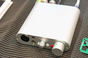 オーディオデザインブースでは、現行モデルを中心とした製品ラインナップが展開されており、ヘッドホンアンプ「DCHP-200」がメインアイテムとして置かれていた。本モデルはバランス出力に対応したモデルで、4pin XLR/3pin XLR/4.4mmバランス/6.3mmといったヘッドホン出力端子を備えている。