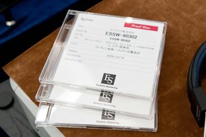 エソテリックブランドからは、ネットワークDAC「N-05XD」、SACDプレーヤー「K-05XD」、クロックジェネレーター「G-05」が設置されており、N-05XDのヘッドホン出力による試聴が可能となっていた。また、同社はSACDも制作しているが、今後発売予定のプレヴィン指揮/ロンドン交響楽団『ガーシュウィン:ラプソディ・イン・ブルー、パリのアメリカ人、ビアノ協奏曲』や、カラヤン指揮/ウィーン・フィルハーモニー管弦楽団『プッチーニ:歌劇《トスカ》』のプルーフ版SACDが試聴できるようになっていた。