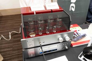 通常モデルからドライバーやパーツを変更するのではなく、筐体内の吸音材などを調整することで低域再生のブラシュアップが図られているとのこと。このほかブースには、トライオードのCDプレーヤー「TRV-CD6SE」、真空管プリメインアンプ「TRV-88XR」も設置されており、組み合わせて試聴できるようになっていた。