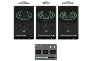 制御用のスマートフォンアプリも用意し、空間オーディオの “広がり感” を「Basic」「Wide」「Large」の3パターンから選択できる。また他のアプリの上にフローティングメニューを表示し、再生中に8Way Audioのオン/オフを切り替える機能も備える。
