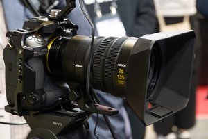 今年10月に開発発表を行った、Zマウント対応の標準ズームレンズ「NIKKOR Z 28-135mm f/4 PZ」も参考展示。パワーズームを搭載した映像制作者向けのレンズで、ドキュメンタリー撮影やワンオペでのロケーション撮影をサポートするとしている。