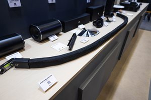またオーディオブレインズ取り扱い製品で面白かったのが、K-Arrayというイタリアの設備系スピーカーメーカー。いわゆるラインアレイスピーカー等を多数展開しているが、目を引いたのは蛇のように長い「Anakonda-KAN200」。長さは2.0mでロープのようにぐねぐねと簡単に曲がる。内部に1インチのフルレンジスピーカーを多数搭載しているとのこと。