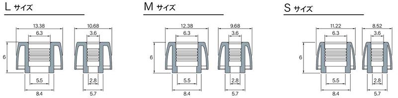 軸部分には、傘素材と比べて硬い素材を採用するとともに、内部に強度調整用のリブを設けた。これにより軸内部の変形を抑えつつ、柔らかい傘部分を耳道に追従させることができ、自然かつ脚色の少ない音響特性を実現したとのこと。また、軸部分は長めに設計しており、耳への圧力を抑えた傘部分と相まって、耳道の奥まで自然な挿入が可能だとしている。