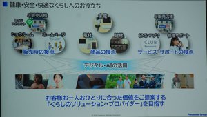 一人ひとりの生涯の健康・安全・快適に対する取り組みでは、「くらしにおける製品・サービスは、お客様が自分のライフスタイルにどう役に立つのかで評価されることになります。くらし領域でこれまでに蓄積したノウハウ・知見を活かして、心と体の健康、そして幸せのために、ご販売店の皆様とともにお客様に寄り添いながら、一人ひとり、そして家族のより深いお困りごと解決につなげていきたい」と説明した。