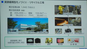 資源循環の取り組みも加速する。パナソニックテクノロジーセンター(兵庫県加東市)での使用済み家電の累計処理台数は1,940万台以上、累計回収資源(重量/2024年7月末現在)は鉄355,999トン、樹脂159,947トン、銅56,222トン、アルミ30,681トンに及ぶ。