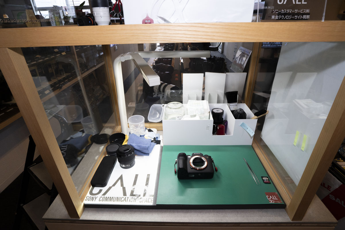11月19日(火)に発表されたばかりのフラグシップモデル「α1 II」ももちろん展示を予定。商品だけにとどまらず、店内にはカメラセンサーのクリーニングを行う設備も設けられ、野田店長が作業を行っている。