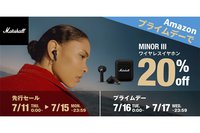 完全ワイヤレスイヤホンでは、「Minor III」が参考価格16,980円のところ、35%オフの10,990円で登場。カスタムチューニングされた12mm径のダイナミックドライバーによる「パワフルでクリアなシグニチャーサウンド」を楽しめるモデルが、今なら1万円台で購入可能だ。