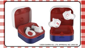 外観デザインも特別仕様で、充電ケースおよびイヤホン本体のカラーはハローキティをイメージ。ケースの外側と内側それぞれに音楽を楽しむハローキティの新規イラストを配し、イヤホン本体にはハローキティとおそろいの真っ赤なリボンがあしらわれている。パッケージデザインはハローキティが音楽を楽しむ姿が描かれたレトロ調の新規イラストを採用した。