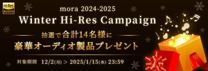 音楽ダウンロードサービスmoraは、1,500タイトル以上のハイレゾ音源を最大80%オフで販売する「mora 冬のハイレゾプライスオフ2024」を、本日2024年12月2日(月)から2025年1月15日(水)まで開催する。