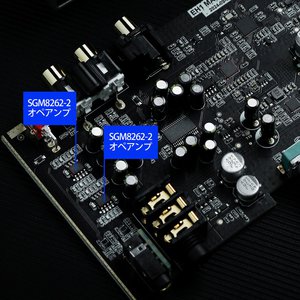 ヘッドホンアンプ回路はフルバランス構成とし、SG micro社の「SGM8262-2」オペアンプを2基搭載する。コンデンサーについてもSAMYOUNG、パナソニック、エルナー製の高品位パーツを分配配置。4.4mmバランス出力は最大1015mW、6.35mmシングルエンド出力は最大399mW(ともに32Ω、DC給電時)と高い出力性能を獲得しつつ、ナチュラルで温かみのある柔らかなサウンドに仕上げたという。