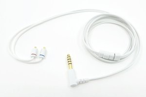 付属ケーブルはイヤホン本体カラーにあわせたホワイトの外皮を採用。導体は高伝導のOFC4芯線で、長さは約1.2m。イヤホン側コネクターは互換性に優れるMMCXコネクター、プラグは3.5mm 3極のL字型を採用している。