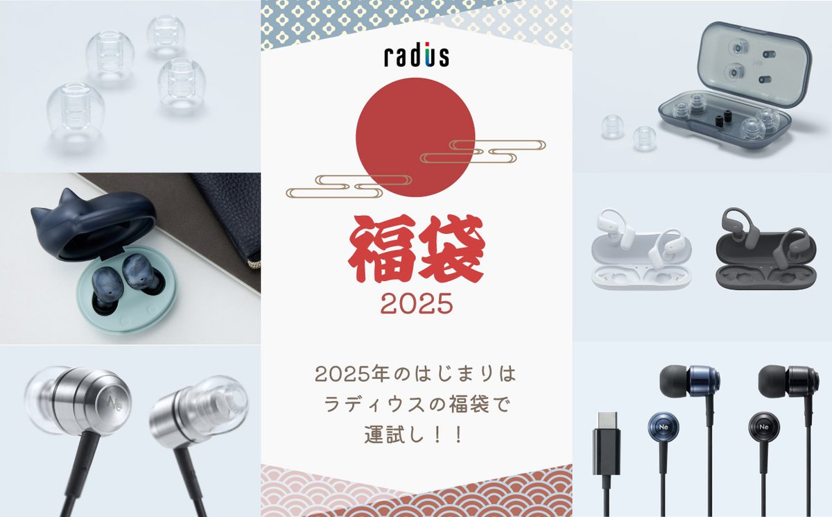 ラディウスは、同社イヤホンやアクセサリー製品を詰め込んだ「ラディウス福袋2025」を、2025年1月7日10時より同社オンラインショップにて販売する。