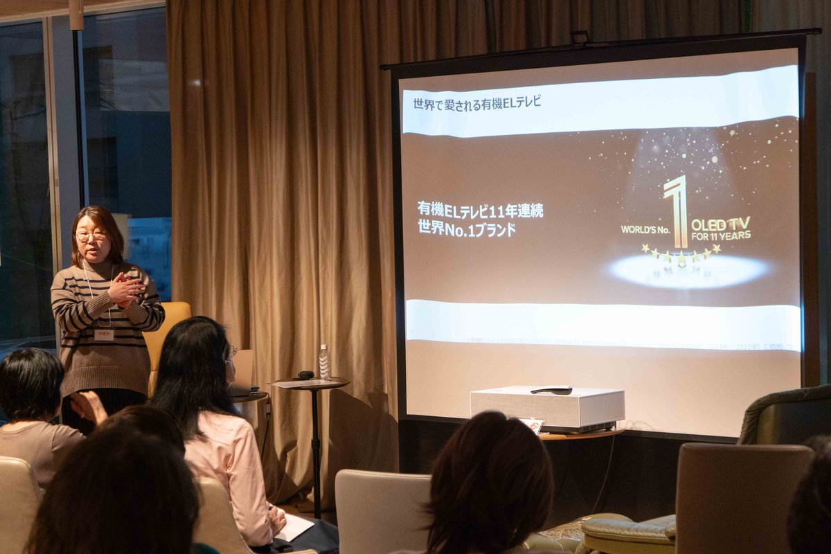 LGエレクトロニクス・ジャパンによるプレゼンテーションでは、家電やオーディオ・ビジュアル機器をはじめ、自動車部品事業からデジタルサイネージといったビジネスソリューションまで取り扱うグローバル企業としての概要を説明しつつ、有機ELテレビのリーディングカンパニーとして11年連続・世界No.1の出荷台数を実現していることを明言する。そして、国内マーケットにおいては、70型以上の超大型・有機ELテレビ出荷台数ベースでシェアNo.1を獲得したという。