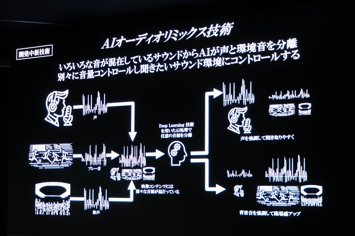 しかし「AIオーディオリミックス」では、ディープラーニングを用いることで、声と歓声、背景音などを判別して調整することができるため、非常に高精度な調整が可能だと明かした。