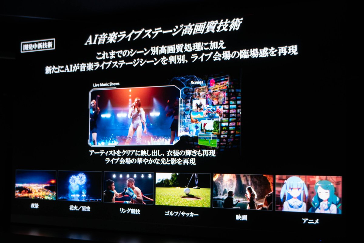 2024年度モデルでは、夜景/花火・星空/リング競技/ゴルフ・サッカー/映画/アニメといった映像を判別していたが、新たに「音楽ライブステージ」が判別可能となったとしている。採用の背景には、テレビの大画面化が進む中で、音楽ライブを大画面で楽しむ需要が増えてきており、より臨場感の高い音楽ライブの表現が求められてきていることを挙げた。