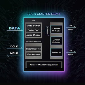 これにともない、ブランド独自のオーディオ制御技術「FPGA-Master」も、第3世代の「FPGA-Master 3.0」へとバージョンアップを遂げた。前世代のFPGA-Master2.0と比較して、FPGA論理回路内のLUTユニット数が7.5倍に拡大。低ノイズのAccusilicon製フェムトクロック水晶発振器 2個と組み合わせることで、音源データの読み出しからPWM信号の生成、DACへの送り出しなどをピコ秒レベルの高精度で制御することが可能だという。