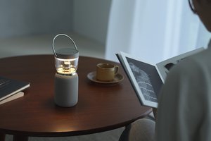 独自のアルゴリズムを用いた繊細でやさしいキャンドルのようなLED灯、360度に広がるサウンド、スッキリと洗練されたデザインにより、心地よい空間を演出するというLEDランタン。バッテリー内蔵でIPX4等級の防水性も備えており、屋外に持ち出して使用することも可能だとしている。
