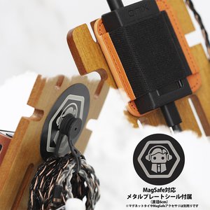 付属品として、別売のMagSafeアクセサリーやマグネットタイを取り付けられるメタルプレートシールを同梱。スタンド背面にメタルプレートを貼り付けることで、MagSafeアクセサリーを直接固定したり、マグネットタイでイヤホンのケーブルを背面にまとめたりできる。