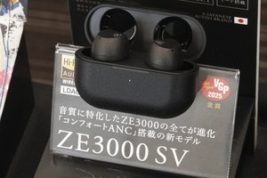 さらに、最新の完全ワイヤレスイヤホン「ZE3000 SV」も用意。「手頃な価格で音も良く、ノイズキャンセリング機能も搭載した欠点のない」モデルだとしており、実際に多くの好評の声が届いているという。また同社スタッフによると、finalのイヤーピース「FUSION-G」と組み合わせるとより音が上品になるというユーザーの声があがったとのことで、それを受けて今回のブースでこの組み合わせでの試聴も行えるようになっていた。
