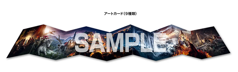 また封入特典として、美しく洗練された名シーンの数々が凝縮された9種類の「アートカード」を同梱。巨大な怪物を背景に槍を手に馬で駆ける王女ヘラの姿をはじめ、騎士の国ローハンをバックに炎に包まれながら巨大象ムマキルと戦う兵士たちや、大鷲が翼を広げる神々しい姿、王国の脅威となるヘラの幼馴染ウルフと対峙するシーンなど、壮大な物語の片鱗が垣間見える重要なシーンが散りばめられており、作品の世界をより堪能できるファン必携のデザインとなっている。