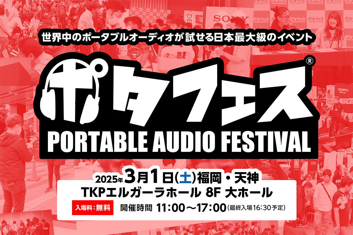 イヤホン・ヘッドホン専門店のe☆イヤホンは、3月1日(土)に福岡・天神のTKPエルガーラホールにて「ポタフェス 2025 福岡」を開催。出展ブランドや注目展示の詳細を公開した。