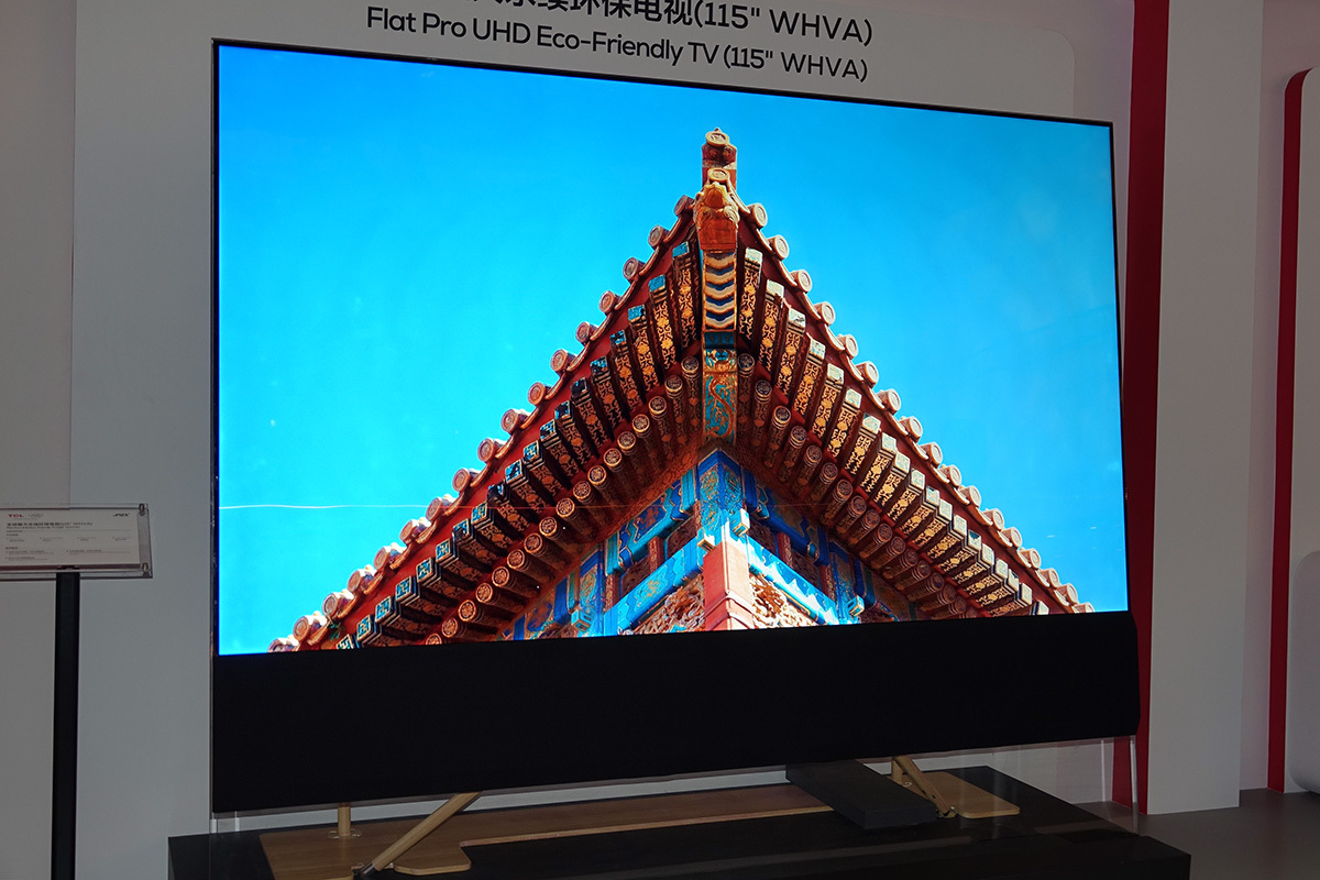 「HVA Pro」パネルは左右178度の視野角を実現したとのこと。広視野角が特徴であるIPS並の性能を実現したVAパネルなのだという。また、応答速度6.5ms/リフレッシュレート120Hzを実現するなどした4Kパネル「WHVA」を使用した115型4Kテレビなども参考展示していた。