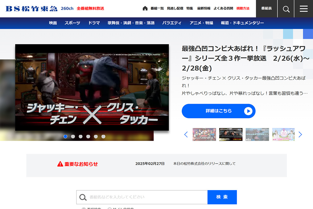 なお、撤退時期の詳細などは明らかにしておらず、BS松竹東急の公式サイトでは「本日、松竹株式会社より、松竹グループとしてBS放送事業から撤退することが発表されましたが、当社としては、引き続き、放送を継続してまいります」とアナウンス。「今後、新たな情報があれば、当ホームページ上にてお知らせいたします」と案内している。