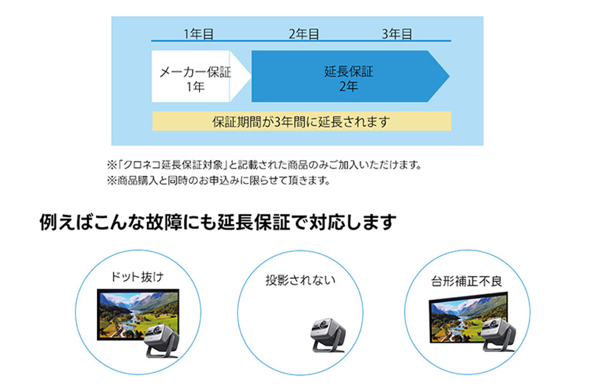ほか4月から、自然故障に対する無償修理を何度でも受けられる「クロネコ延長保証サービス」を開始。契約年数に関わらず、保証金額の減額なく購入金額までの修理対応、または代替品を提供する。既存のJMGOユーザー向けに、新商品の延長保証をプレゼントする「JMGO Family Campaign」も開催中とのこと。