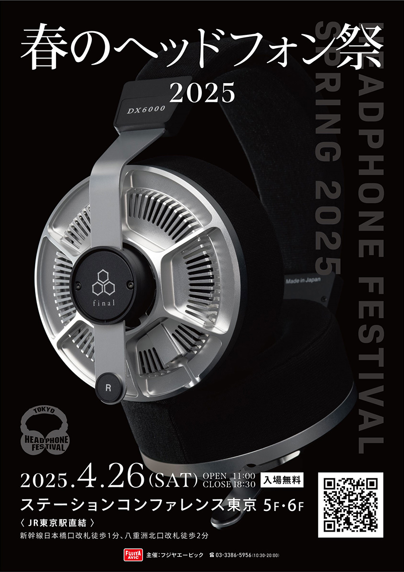 フジヤエービックは、ポータブルオーディオ関連ブランド各社が集う展示試聴イベント「春のヘッドフォン祭2025」を、4月26日(土)に開催する。会場は、JR東京駅そば、サピアタワー5F/6Fの「ステーションコンファレンス東京」。