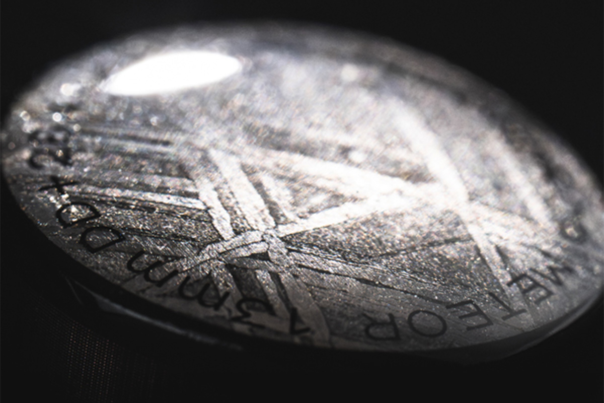 フェイスプレートには隕石の粉が使用されており「ウィドマンシュテッテン構造(独: Widmanstätten-Struktur)」と呼ばれる、カマサイトやタエナイトといった地球外鉱物によって形成された独特な模様が活かされている。小惑星の核内部で数百万年ごとに1℃ずつ冷却されて生まれる構造のため膨大な時間が必要で、数億年の時を経て結晶化するという。「一つとして同じものが存在しない唯一無二の輝き」と、美しさもアピールした。