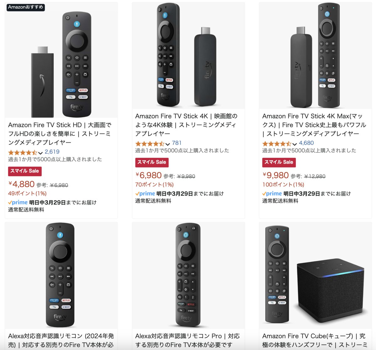 【AmazonスマイルSALE新生活FINAL】Fire TVシリーズが最大30%オフ!4Kモデルなどがお得に