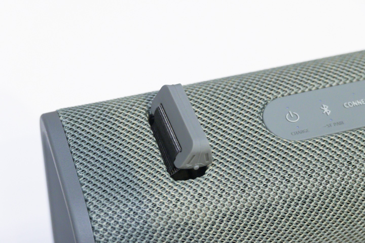 天面には電源ボタンやBluetoothペアリングボタン、再生/停止ボタン、音量ボタンなどを配置し、右端の「ULT」ボタンを押すことで低音を増強する「ULT POWER SOUND」モードに切り替え可能。マルチレイアウトデザインを採用しており、縦置き/横置きどちらでも使用できる。