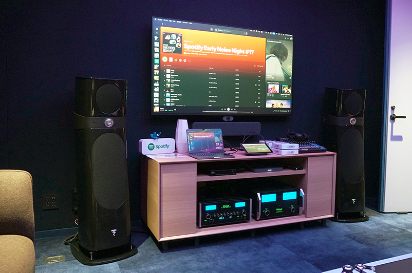 その中でも特筆すべきが、全世界のSpotifyオフィスで常設されているというミュージックリスニングルーム。ハイエンドなオーディオシステムが11Fメインフロアの一室に組み込まれ、ここではアーティストや社員が、配信予定の楽曲やデモ曲のクオリティチェックを行っているという。
