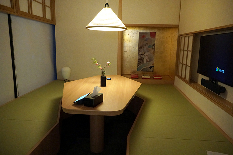 社員のみが入れる別階の10Fフロアには、社員が自由に休憩できる和室のウェルネスルーム「Heart&Soul」が用意されている。