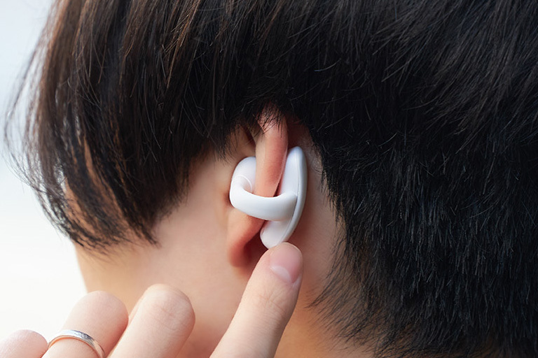 長時間快適に装着できるよう細部までこだわった耳に優しいデザイン、環境と音楽が心地よく溶け合う日常に寄り添うサウンドで、“生活に優しくフィットする” ことをコンセプトとしたイヤーカフ型の完全ワイヤレスイヤホン。