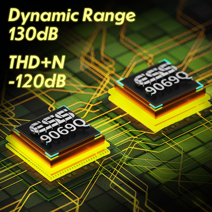 音質と省電力のバランスが取れたESS社の「ES9069Q」DACチップをデュアル構成で搭載し、高解像度なサウンドを手軽に楽しめるとするBluetoothアンプ。
