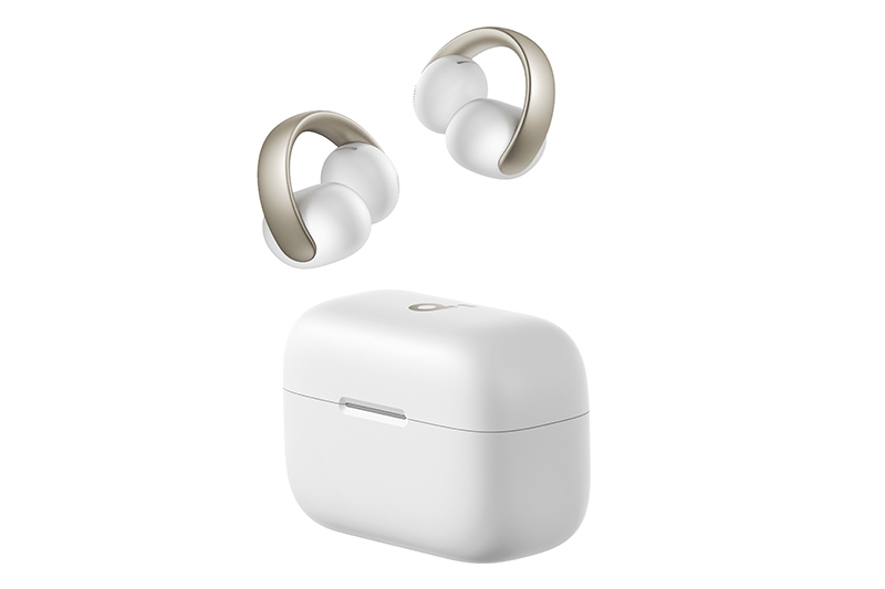 本製品は、ミニマルで洗練されたデザインとストレスフリーな着け心地が魅力としたイヤーカフ型の完全ワイヤレスイヤホン。耳元を飾るアクセサリーのようなシンプルで洗練されたデザインを採用し、様々なファッションスタイルにも合わせやすいと謳う。また耳に挟む形状により、メガネやサングラスとも干渉しにくく着脱が簡単としている。