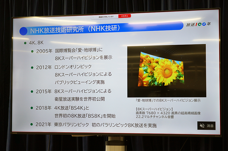 また4K/8Kについては、2005年に国際博覧会「愛・地球博」にて8Kスーパーハイビジョンの展示を実施。
