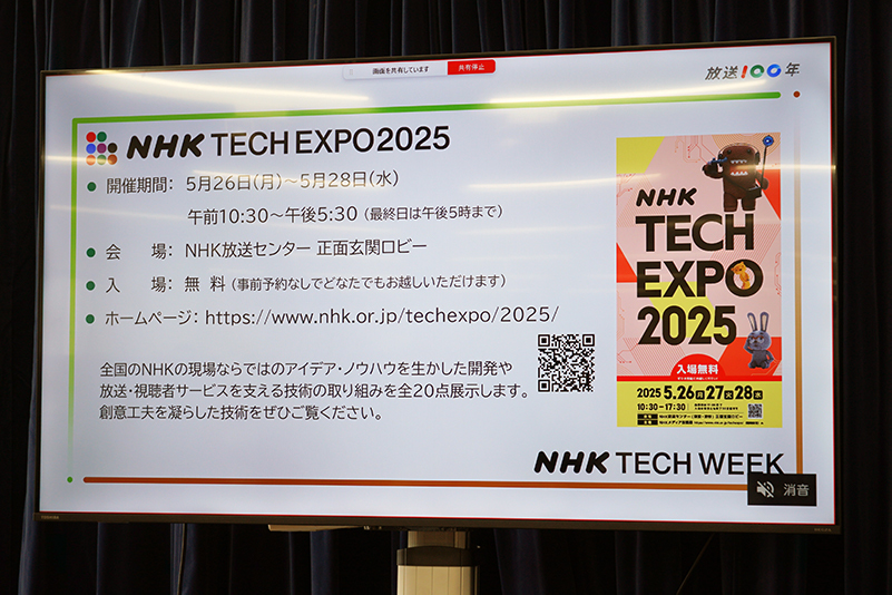 さらに今年は、全国のNHK技術職員が現場ならではのアイデアから生み出してきたものを紹介する展示会「NHK TECH EXPO2025」を、5月26日(月)から28日(水)にわたって開催する。