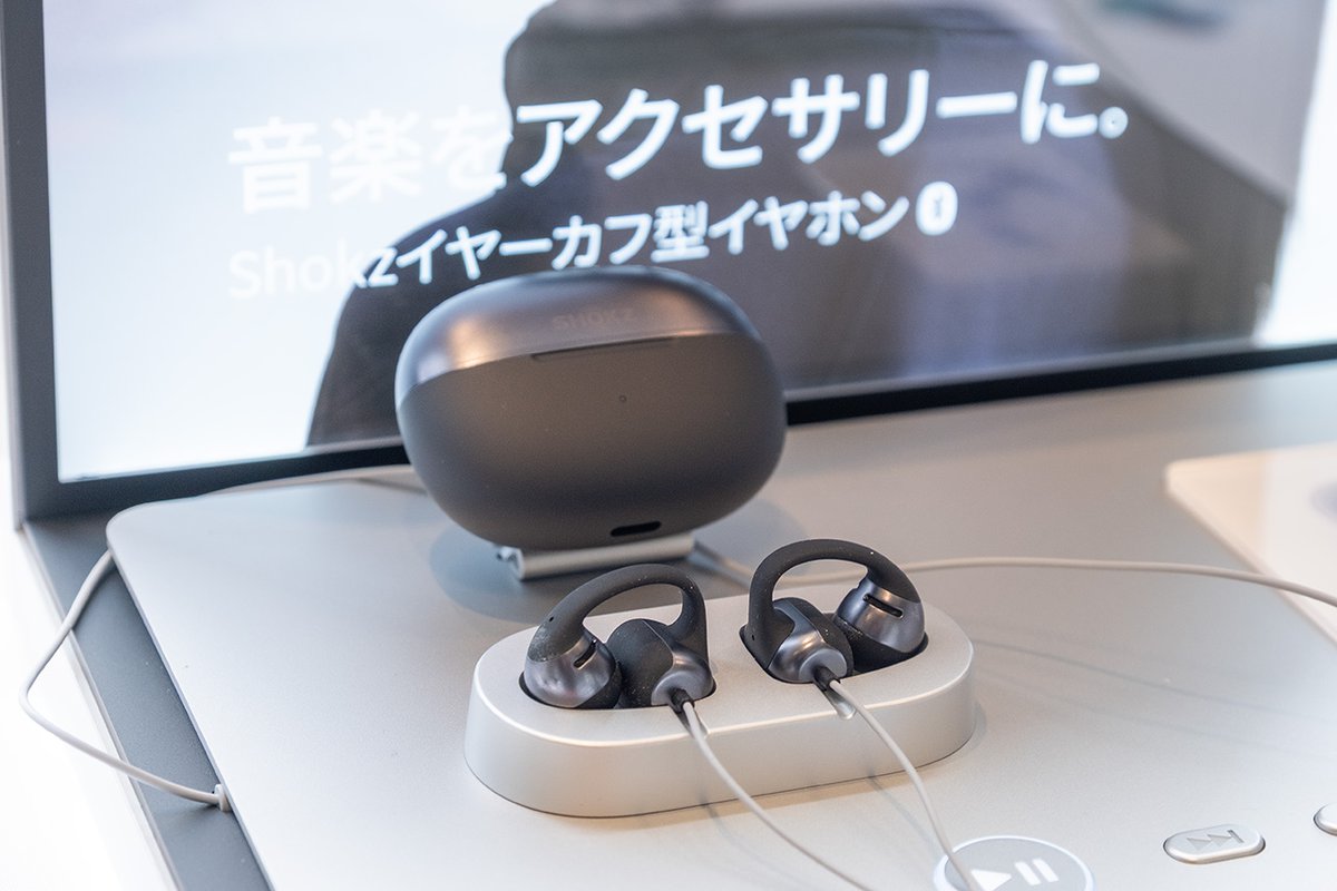 OpenDots ONEは、オープンイヤー型の第一人者といえるShokzブランド初のイヤーカフ型完全ワイヤレス。3月から始まったクラファンは現時点で達成率18,500%超えという驚異的な人気を見せており、この日も早期出荷された実機を持ってブースに訪れた方が何人もいたそうだ。